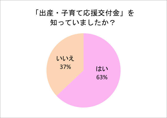 そこで、ベビーカレンダー会員のママに「出産・子育て応援交付金」を知っているかどうかを尋ねたところ、「はい」63%、「いいえ」37%という結果に。「知っている」と答えた人が「知らない」と答えた人を上回ったものの、回答者の3分の1以上が「知らない」ということが明らかになりました。
