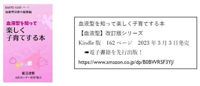 一般社団法人ヒューマンサイエンスABOセンター(東京都中央区 代表理事 市川千枝子)は、血液型保育の総集編として「血液型を知って楽しく子育てする本」Kindle版を出版しました。誰でも気軽に血液型を知る楽しさを味わっていただけるよう、9日まで無料キャンペーンを実施します。ぜひこの機会をご利用ください。