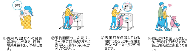 「もっと気軽に子供と外出できる社会を!」をコンセプトに、子育て世帯が子供と気軽に外出できる社会の実現を目的とした、外出先でも便利に利用できる予約可能なベビーカーのレンタルサービスです。観光や旅行の際はもちろん、お買い物やランチなど短時間でも気軽にご利用いただけます。