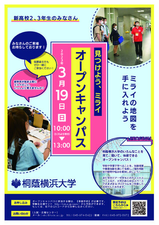 3月19日(日)に新3・2年生を対象としたオープンキャンパスを開催いたします。今回は、「大学での学びの楽しさ」を軸に、すでに大学進学を決めている人だけでなく、専門学校進学か公務員や民間企業への就職か、で迷っている人にも向けた内容となっています。