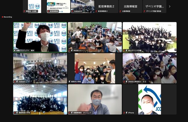 “陸養“プロジェクト実行委員会は、「みんなで海の問題について考えよう! “陸養”プロジェクトオンライン交流会」を2023年3月2日(木)にオンラインで実施しました。陸養プロジェクトを通して学んだ海の恵みや水産業のこと、自分たちで自主的に調べたこと等について発表し交流しました。参加校は、東京都の神宮前小学校、大阪府の東深井小学校、千葉県の馬橋小学校、愛知県の蒲郡南部小学校、福島県の郡山ザベリオ学園小学校 の5校です。