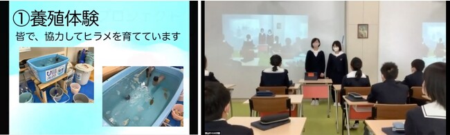 最後に、これまで養殖についての講師を務めてくださったNPO日本養殖振興会の齊藤先生から「いろんな学校の発表をきけて良かったと思う」「大切な経験をしたと思うので、それを今後も生かしていってほしい」というメッセージをいただきました。その後、画面越しに記念撮影をして交流会は盛況のうちに終了しました。