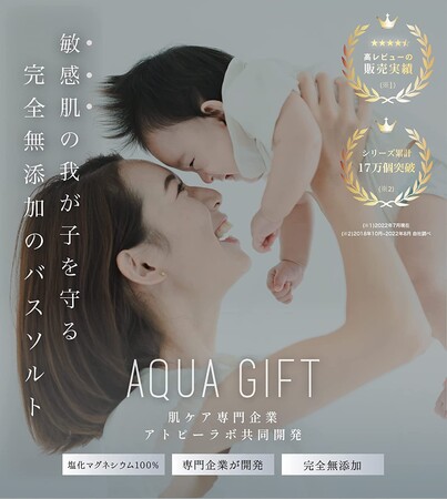 【AQUAGIFTについて】アトピー肌専門企業と共同開発した、100%自然成分のバスソルト