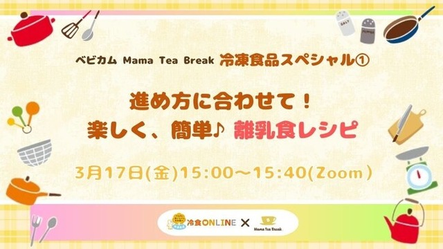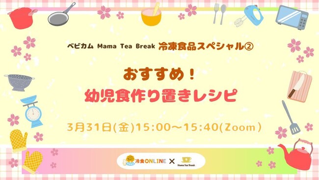 この番組は、ベビカムが定期的に開催しているママ(パパ)向けオンライン番組「ママティーブレイク」の特別版です。今回は、「冷食スペシャル2. ~おすすめ!幼児食作り置きレシピ~」と題して、(一社)日本冷凍食品協会(https://www.reishokukyo.or.jp/)とコラボでお送りします。
