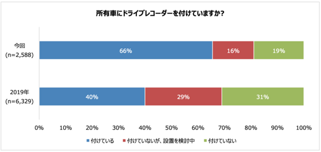 1. クルマへのドライブレコーダー設置率は26ポイント上昇し6割超