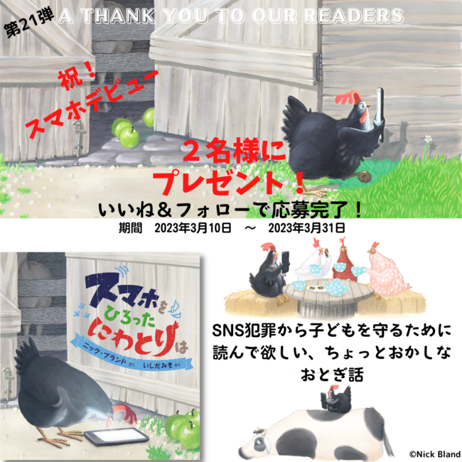 2.絵本『スマホをひろったにわとりは』プレゼントキャンペーンの投稿を