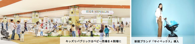 キッズ ベビー売場は4割増。ベビーカー・チャイルドシートなどの大型育児雑貨を拡大