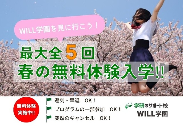 学研のサポート校WILL学園にて、3月限定で体験入学を最大5回まで無料!