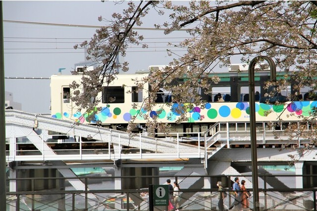このサクラトレインは、満開の桜をゆっくり楽しめるよう、時間をかけて隅田川橋梁を渡ります。