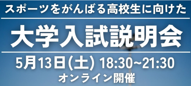 体育会・スポーツ学生のための就職活動支援サイト「スポナビ」を運営する株式会社スポーツフィールド(本社:東京都新宿区 代表:篠崎 克志)は、5月13日に運動部学生の学びの支援等を行う河合塾グループの株式会社KEIアドバンスと共催で「スポーツをがんばる高校生に向けた大学入試説明会」を開催いたします。