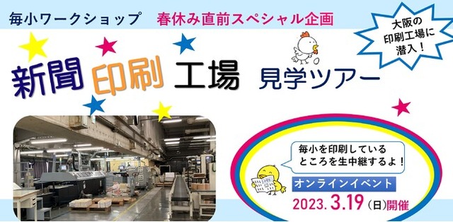 毎日新聞社(代表取締役社長:松木健)は3月19日午前10時半から、小学生の親子向けのオンラインイベント「新聞印刷工場見学ツアー」を開催します。毎日小学生新聞(毎小)の編集部での記事作成や工場での印刷といった新聞づくりのプロセスを丸ごとオンラインでお届け。お子さまの学びにつながる内容です。ぜひご参加ください。