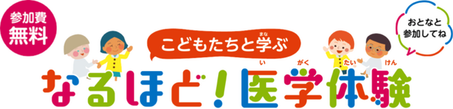 医療の場を実際に体験することをきっかけに、医学・医療をもっと身近に感じてもらいたいと思います。そして、医学や医療に興味がわいて、こどもたちが飛躍(飛び上がるように急に進歩)するバネになってくれればと願います。気軽に、そして純粋に「医学を楽しんで」ください。(プログラムは事前申込。無料。)