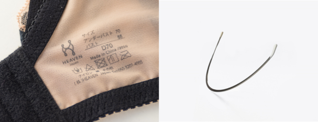 「ビスチェリーナ」はレースが直に体に当たらないように工夫しているだけでなく、取り扱い表示もタグではなく裏地に直接プリントされているため、チクチクすることがなくとっても快適。通気性・保形性が高いカップは蒸れにくく、形崩れの心配もありません。ワイヤーも体に沿うように作られたヘブンジャパン独自の「3Dワイヤー」を採用しているため、ワイヤーが当たって痛くなりにくいのも嬉しいポイントです。