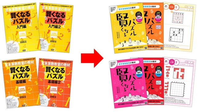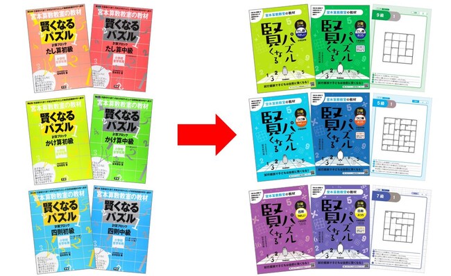 宮本算数教室の教材『賢くなるパズル』シリーズは、2006年に発売以来、未就学児や小学生を中心として「楽しくてどんどん解きたくなる」「勉強嫌いの子どもが自ら解いている」と大変ご好評をいただいている教材です。