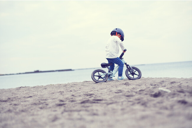ストライダーは、決して自転車に乗るための単なるステップではありません。自転車と違い、もっと自由な乗り物です。芝生の上や、森の中、砂利道など、場所を選ばず楽しむことができます。それが例え雪の上であっても、ストライダーは子どもたちの好奇心と共に走り続けます。