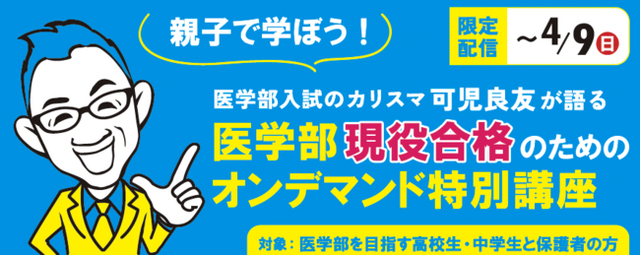 親子で学ぼう!医学部入試のカリスマ可児良友が語る「医学部現役合格のためのオンデマンド特別講座」