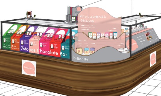 出店場所の東武百貨店池袋HANA 3 TERRACE(ハナサンテラス)は「ココロ躍る新しいスイーツに出会える!」がテーマ。チョコレートバーや和漢茶など、女性に嬉しい要素の詰まった個性豊かなMinotteのスナック&ドリンクを販売します。