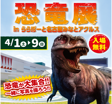 ららぽーと名古屋みなとアクルスは、2023年4月1日(土)~4月9日(日)の期間、巨大恐竜が大集合する