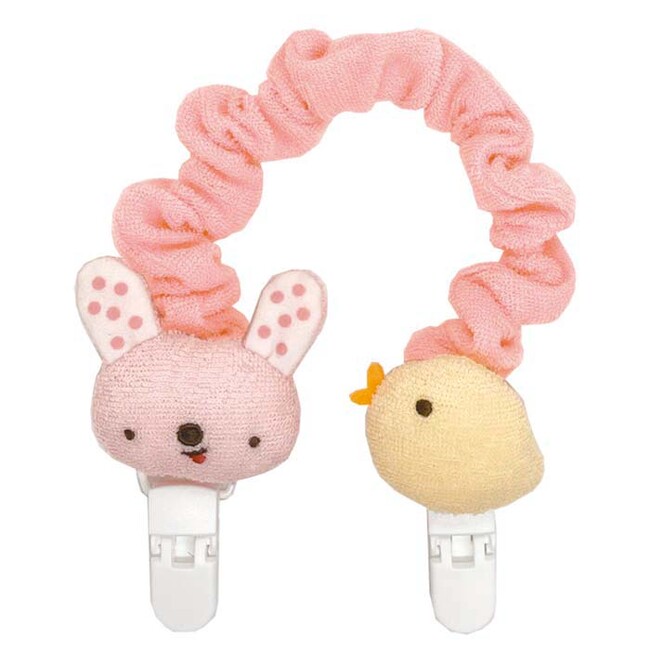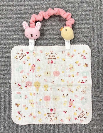 内容:手持ちのタオルやハンカチをクリップで留めれば簡単にベビースタイに早変わり!他にもブランケットのずり落ち防止や、バギーにおもちゃをつけておくトイストラップとしても使用可能です。ウサギまたはクマとヒヨコがあしらわれているので、見た目もとってもキュートです。