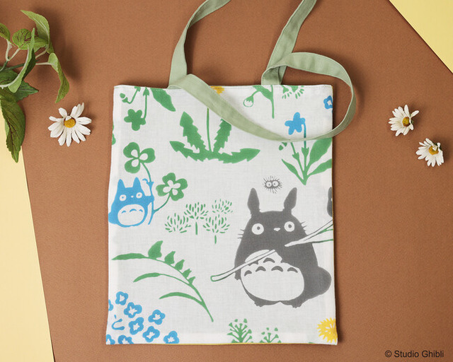 オープンを記念して、野の花とトトロたちをあしらった「おでかけ袋」を天王寺ミオ店限定で発売いたします。通気性の良い綿素材で、これからの季節のお出かけにぴったりです。