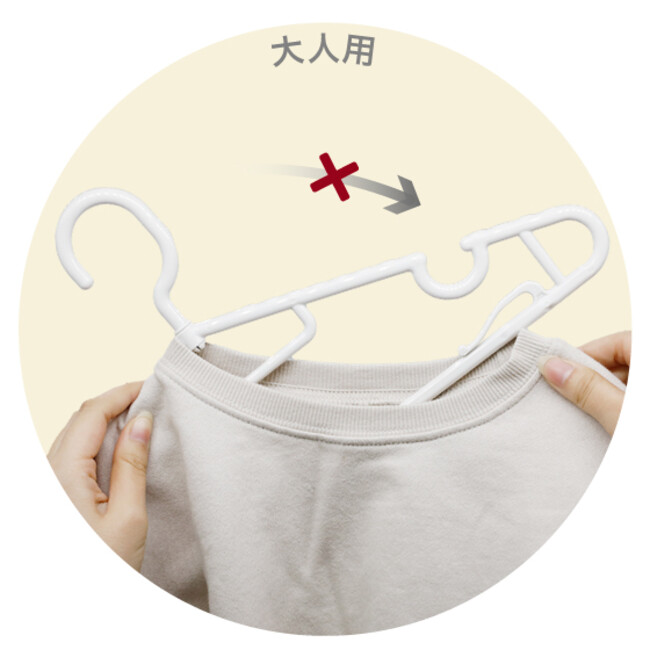大人サイズのハンガーだと干すたびに首元を伸ばしてしまうので服の型が崩れる原因に...