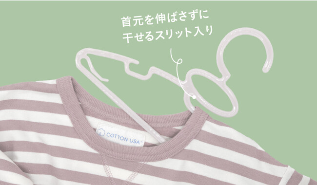 スリット入りなので、子供服の首元を伸ばさず干せます。