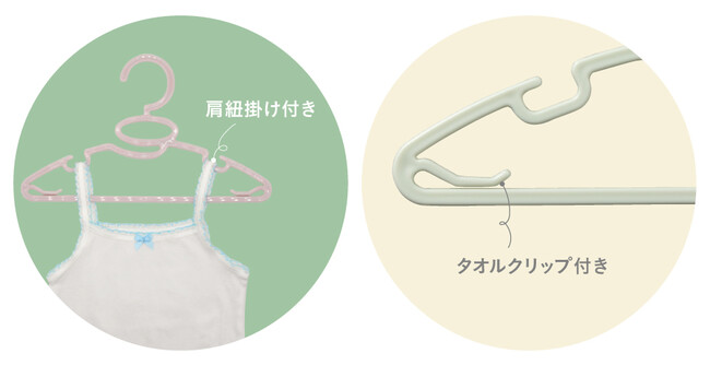 肩紐掛けを使えば、肌着やワンピースを滑らず干せて楽ちんです。