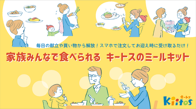 千葉県内に認可保育園を13園運営する株式会社ハイフライヤーズ(https://www.kiitos-kids.net 本社:千葉県千葉市、代表取締役:日向高志、以下ハイフライヤーズ)は自社が運営する認可保育園「キートス」にて「子どもと食べる魔法のミールキット」を展開するハーベスト株式会社(http://www.harvest-corp.co.jp/ 本社:神奈川県横浜市、代表取締役:脇本実、以下ハーベスト)と連携し、保護者が保育園に子どもを迎えに来た際にその場でも注文・購入ができる『家族みんなで食べられる!ミールキット』の販売を開始しました。親子が向き合う時間を増やすことを目的としています。