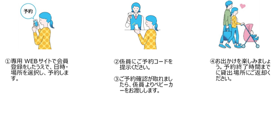 「もっと気軽に子供と外出できる社会を!」をコンセプトに、子育て世帯が子供と気軽に外出できる社会の実現を目的とした、外出先でも便利に利用できる予約可能なベビーカーのレンタルサービスです。観光や旅行の際はもちろん、お買い物やランチなど短時間でも気軽にご利用いただけます。