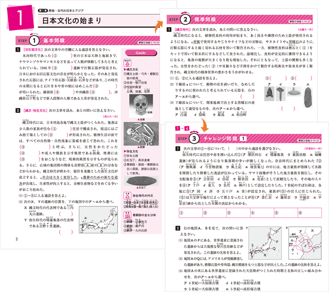 「STEP1 基本問題→STEP2 標準問題→STEP3 チャレンジ問題」とステップアップ式学習で、スムーズに実力をつけることができます。