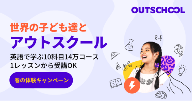 アウトスクール(Outschool, Inc. 本社:米国カリフォルニア、代表取締役Amir Nathoo)は、この春1クラス$15ドルまで初回授業を無料で受講できる、日本限定・春の体験キャンペーンを、2023年3月1日から4月30日まで実施中。日本語サイトから特典クーポンコードをお受け取りいただき、初回クラスをお楽しみいただけます。
