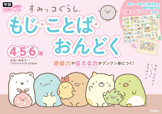 「学研わくわく知育ドリル すみっコぐらし」シリーズ(※)から、3冊目となる『すみっコぐらし もじ・ことば・おんどく 4・5・6歳』が発売になりました。すみっコぐらしのイラストいっぱいの、かわいくて楽しいワークで、就学以降の生活でより重要かつ不可欠な“語彙力”と“伝える力”をはぐくみます。