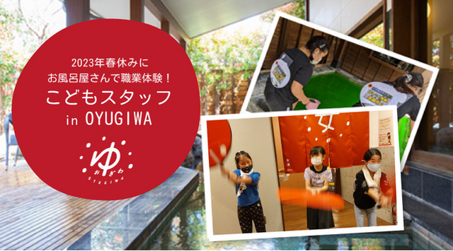 2021年より子どもたちの夏休みや冬休みに開催し好評を博しているお風呂屋さんの職業体験イベント「こどもスタッフin OYUGIWA」を、今回初めて春休みシーズンの3月26日(日)に開催します。