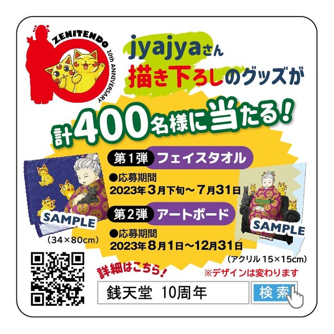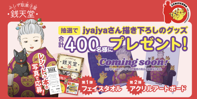 1.jyajyaさんの描き下ろしグッズが計400名様に当たる! 銭天堂10周年プレゼントキャンペーン