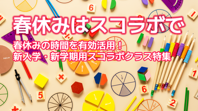 新学期が始まる前の春休み。ゲームやYoutubeに時間を遣うより、新学期や将来に向けた何かをしてほしいと悩んでる保護者の方も多い時期です。そんな時期におすすめのスコラボクラスを、3月より新たに7つスタートしました。また、新学期準備にぴったりなクラスの特集も開始しました。コミュニケーション構築、勉強の楽しさ実感、音楽や漫画などのアート、プログラミングなど、新しい学期に自信を持って臨めるクラスが揃っているので、お子さんが楽しみながら新学期に向けての準備に取り組むことができます。