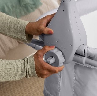 ベッドのフチを挟み、ねじのように回して取り付けます。