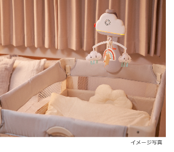 赤ちゃんの泣き声を感知し、自動でメロディが流れるお目覚めグズグズセンサーとソフトライトで睡眠へ促します。