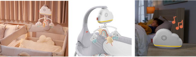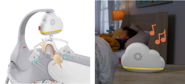 泣き声を感知するとセンサーが反応しメロディが自動的に流れ、赤ちゃんを睡眠へ促します。