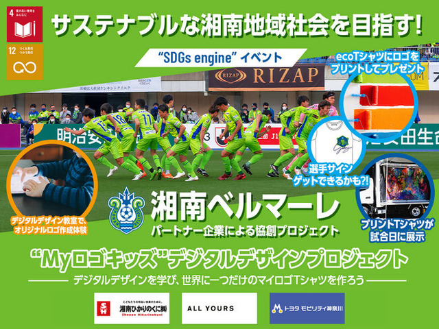 今回の企画はオフィシャルクラブパートナーの湘南ひかりのくに様主催のもと、オールユアーズ様、神奈川トヨタ自動車様の共催で実施する湘南ベルマーレでの協創イベントとなっております。