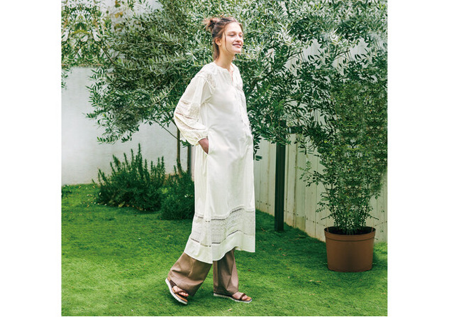 着丈は122cmと長めなので、ワンピースとして着るのはもちろん、ワイドパンツと合わせる旬な着こなしもおすすめです。