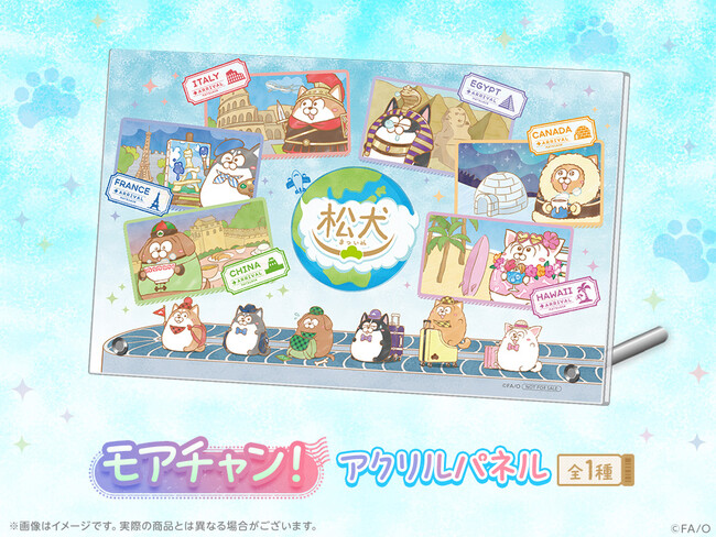 松犬たちの旅行前の準備中のような様子と、旅行中の楽しんでいるような様子をトラベルバッグやどこでも思い出の写真が撮れるアクリルフォトプロップスなど、旅行やおでかけに関連したグッズをラインナップ!