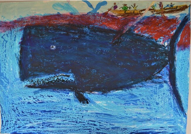 深い海の色に染まるクジラの血や、くじらの雄々しさ、雄大さを感じさせる圧倒的な迫力です。くじらと海上の人々の大きさの対比も良く、壮絶な狩りの様子の想像をかきたてられます。