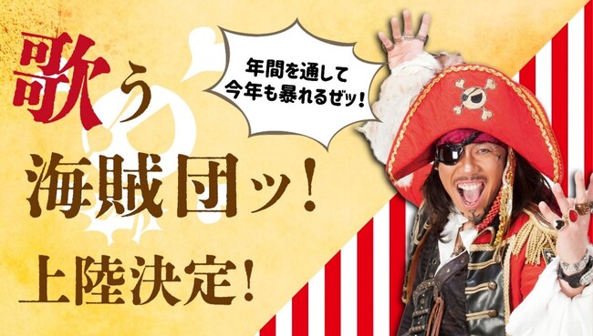 そして、今年もコンサートスタンプラリーを実施。コンサートに3回・5回お越しいただくと、オリジナルグッズをプレゼント。また「歌う海賊団ッ!」限定デザイン年間パスポートが新登場!更に、今シーズンは「歌う海賊団ッ!」とコラボした新企画も準備しており、これまで以上にご来園者を盛り上げます。「歌う海賊団ッ!」ファミリーコンサートに是非、ご家族ご友人と一緒にご乗船ください。