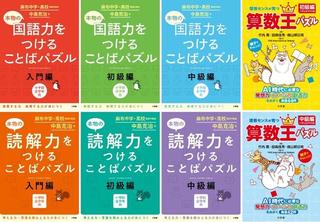 「本物の国語力をつけることばパズル」シリーズと「本物の読解力をつけることばパズル」シリーズは、小学生のうちに身につけてほしい基本的な国語力・言語コミュニケーション能力をパズル形式で楽しく学べるドリル、「理数センスが育つ算数王パズル」シリーズは、AI時代に勝つための理数脳を育てるパズルドリルです。