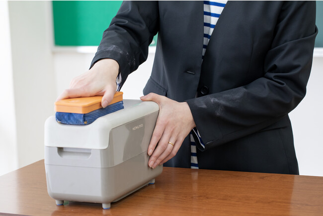 本商品は、既定の服装がないにもかかわらず、参観日や家庭訪問や、個人面談などシーンによってある程度の服装基準が求められる教職員に向けて開発いたしました。自社開発素材「ultimex」を使用し、自宅洗濯機で毎日丸洗い可能で、部屋干しでも3~4時間で乾く速乾性としわになりにくい機能性を備えており、通常の授業の時以外にも修学旅行や卒業式などの特別な行事でも着用できます。また高ストレッチ性と汚れがつきにくい撥水加工により、黒板の粉で汚れてもササっと拭うだけで汚れが落ち、清潔感を持続できます。
