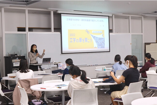 女子児童・生徒の理系進路へのイメージをふくらませる一助として、工学分野やその先の進路について紹介や、現役の女性理系大学生から経営者まで工学分野で学ぶ楽しさを伝える講演も行いました。自分が興味を持っていることを追求する姿勢や将来の進路選択のヒントのお話など、貴重なお話を伺うことができました。