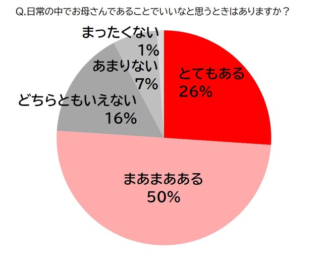 一生懸命に日々を送っているお母さんたちから、もっとこうしてほしい、というホンネも見えてきた今回の調査でしたが、一方で、『日常の中でお母さんであることでいいなと思うときはありますか?』という質問に対しては、76%のお母さんが「ある」と回答する結果となりました。