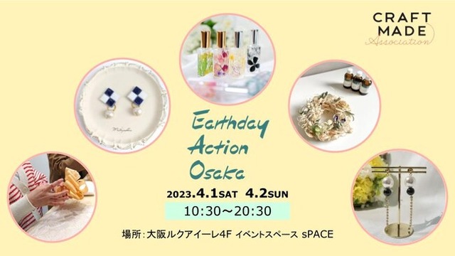 いつもはオンラインで繋がっているハンドメイド作家さんが4月1日、2日に大阪ルクアイーレで開催される「アースデイアクション大阪2023」に集まり、ハンドメイドアイテムの販売やワークショップを行います。