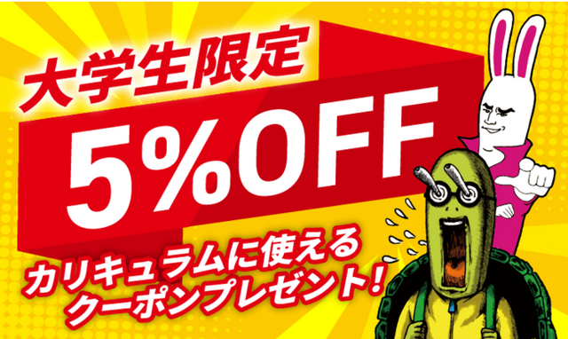 アガルートアカデミーでは、4年制大学の学生の方を対象に、公務員試験対策カリキュラムの『5%OFFクーポン』を進呈しております!