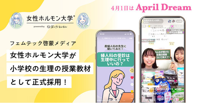 4月1日は夢の日、「女性ホルモン大学(R)」が、小学校の生理の授業教材として正式採用されることが決定!
